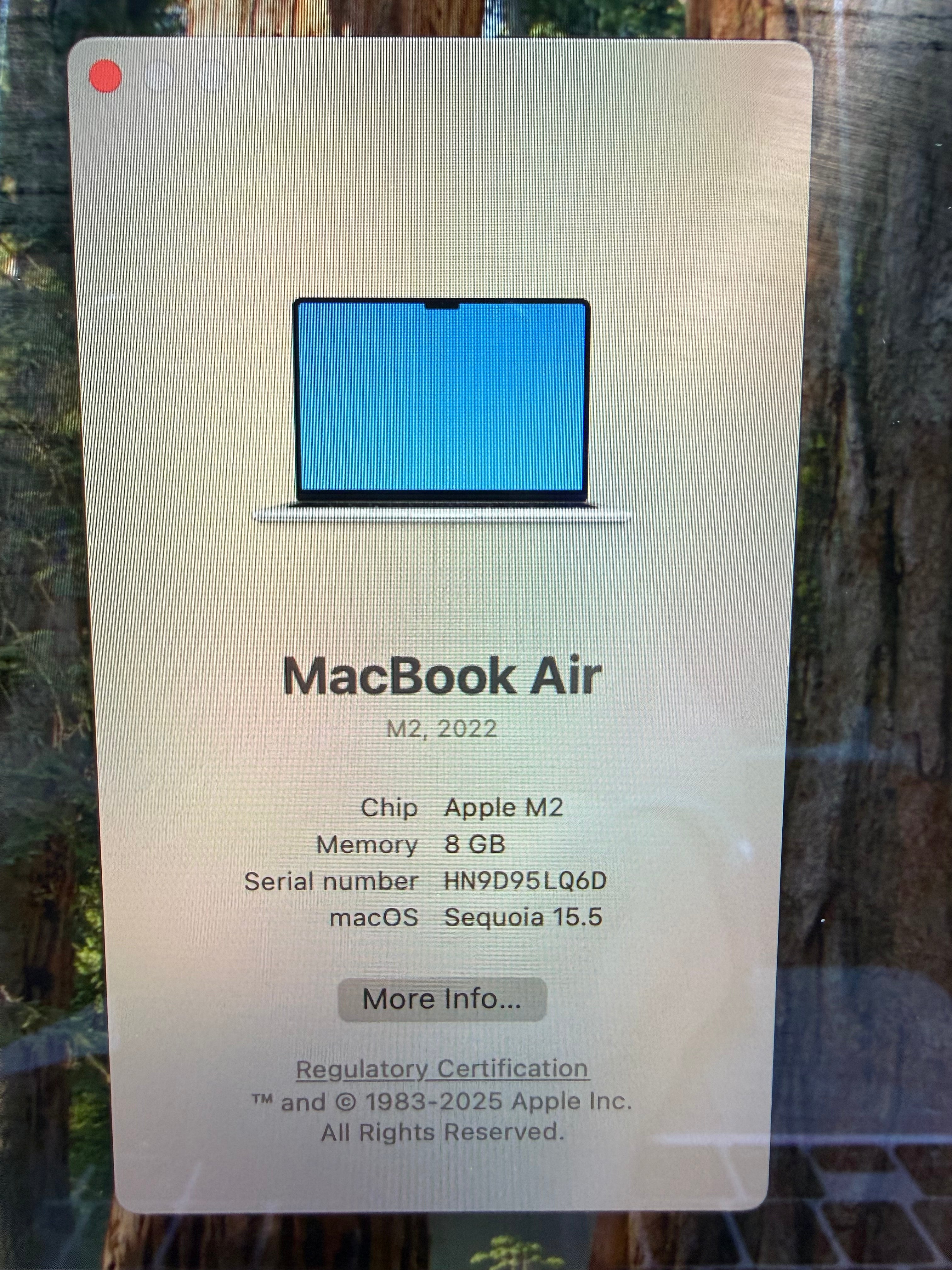 256gb SSD, 8gb Ram - Mac OS Sequoia 15.5.