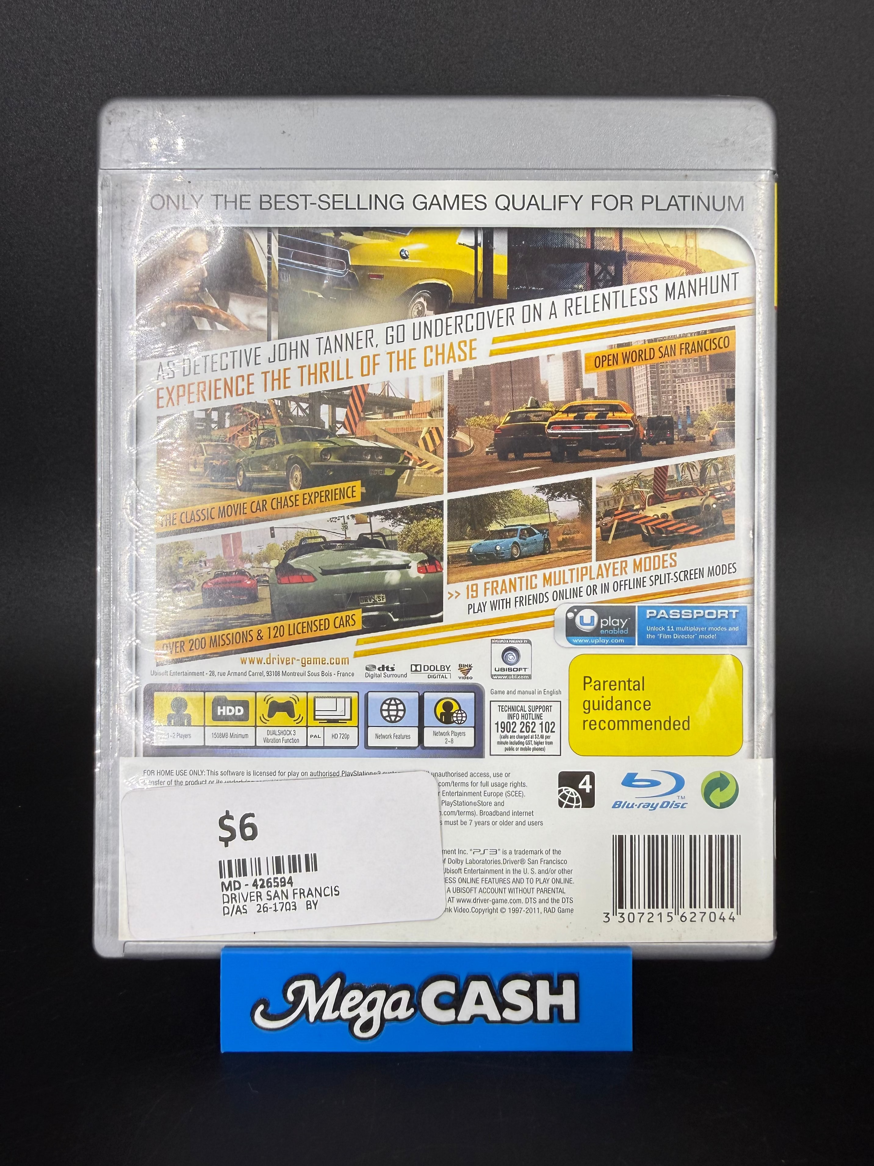 Driver: San Francisco PS3 game in good preowned condition. Fully functional with original manual included. Classic open-world action gameplay featuring intense driving missions and combat sequences. Perfect for retro gaming enthusiasts seeking authentic PS3 titles. Tested and ready to play.