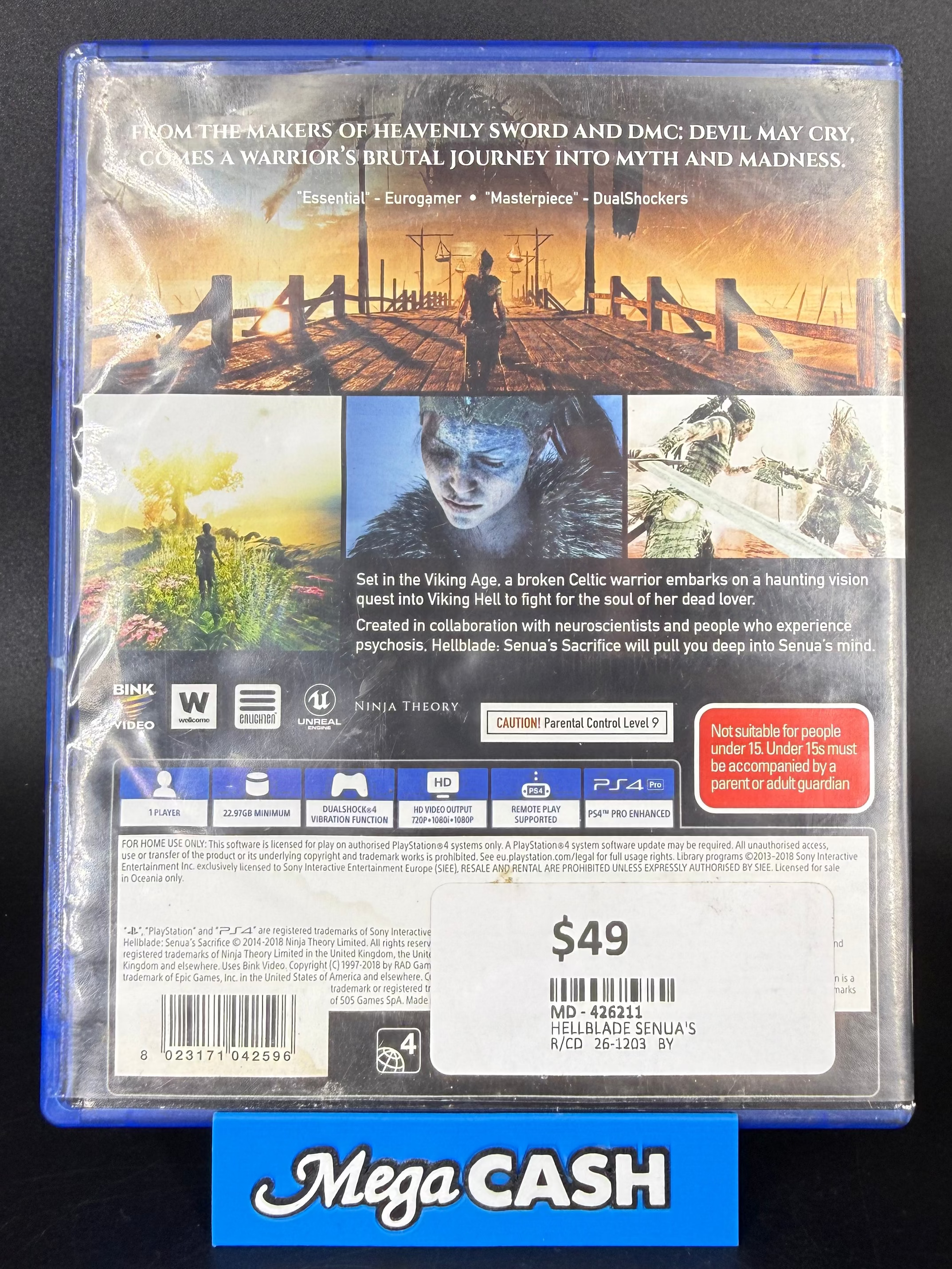 Hellblade: Senua's Sacrifice PS4 game in good pre-owned condition. Fully tested and working perfectly. This critically acclaimed action-adventure delivers stunning visuals and immersive storytelling. Ideal for gamers seeking quality used titles at great value. Fast shipping from Sydney.
