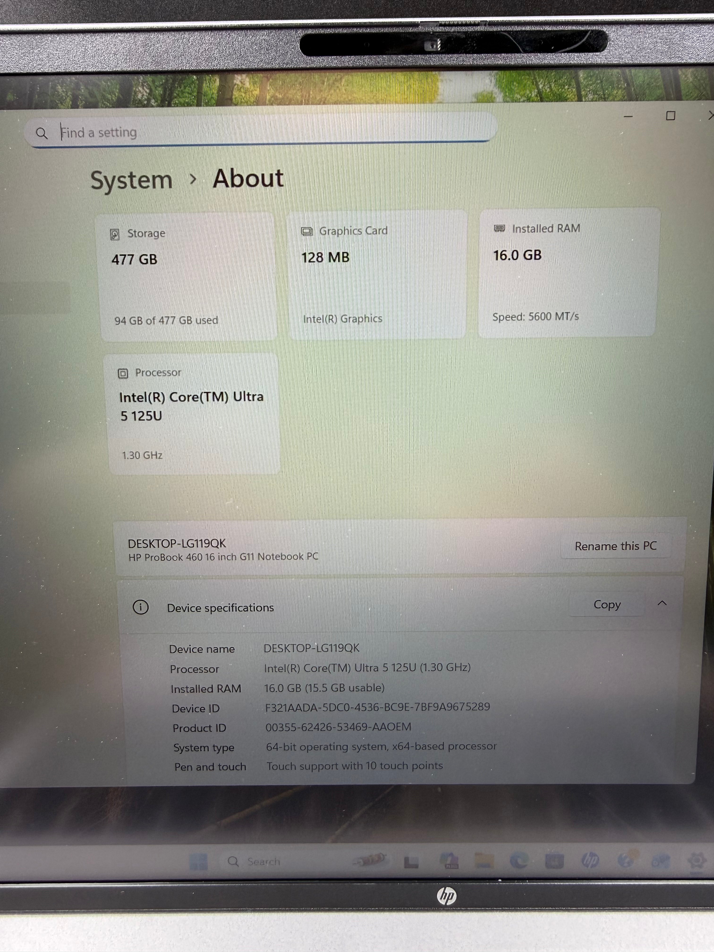 HP Probook 460 G11 Laptop - Intel Core Ultra 5 @ 1.40ghz.
