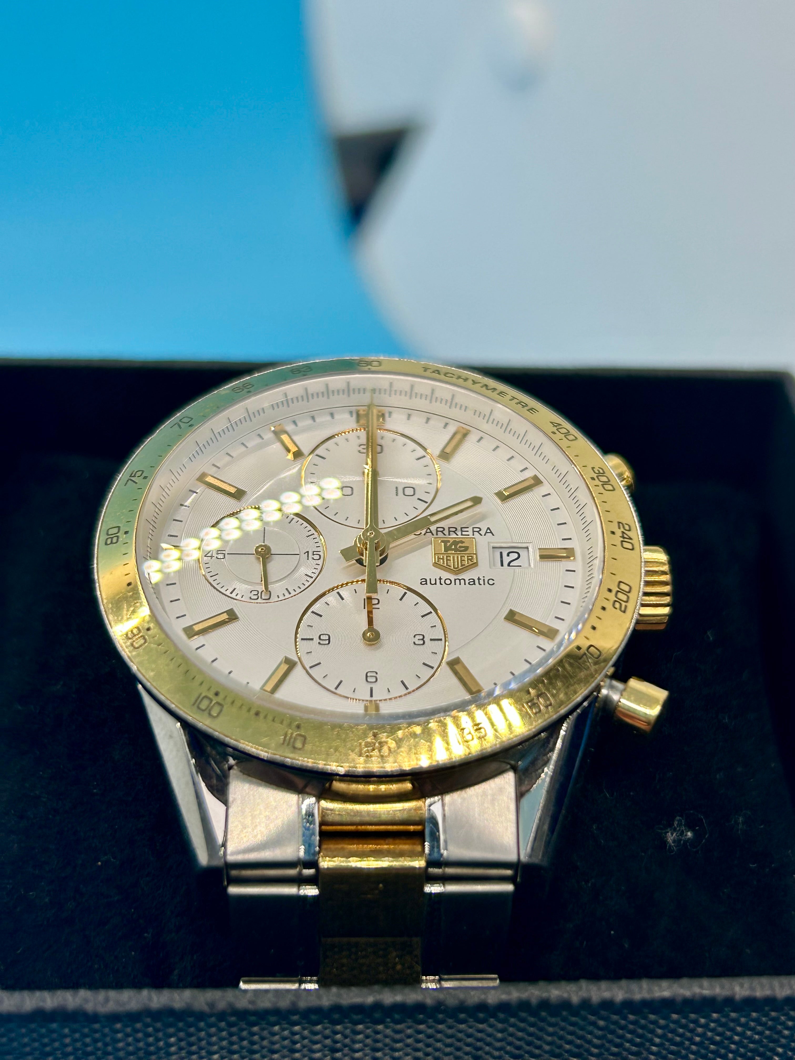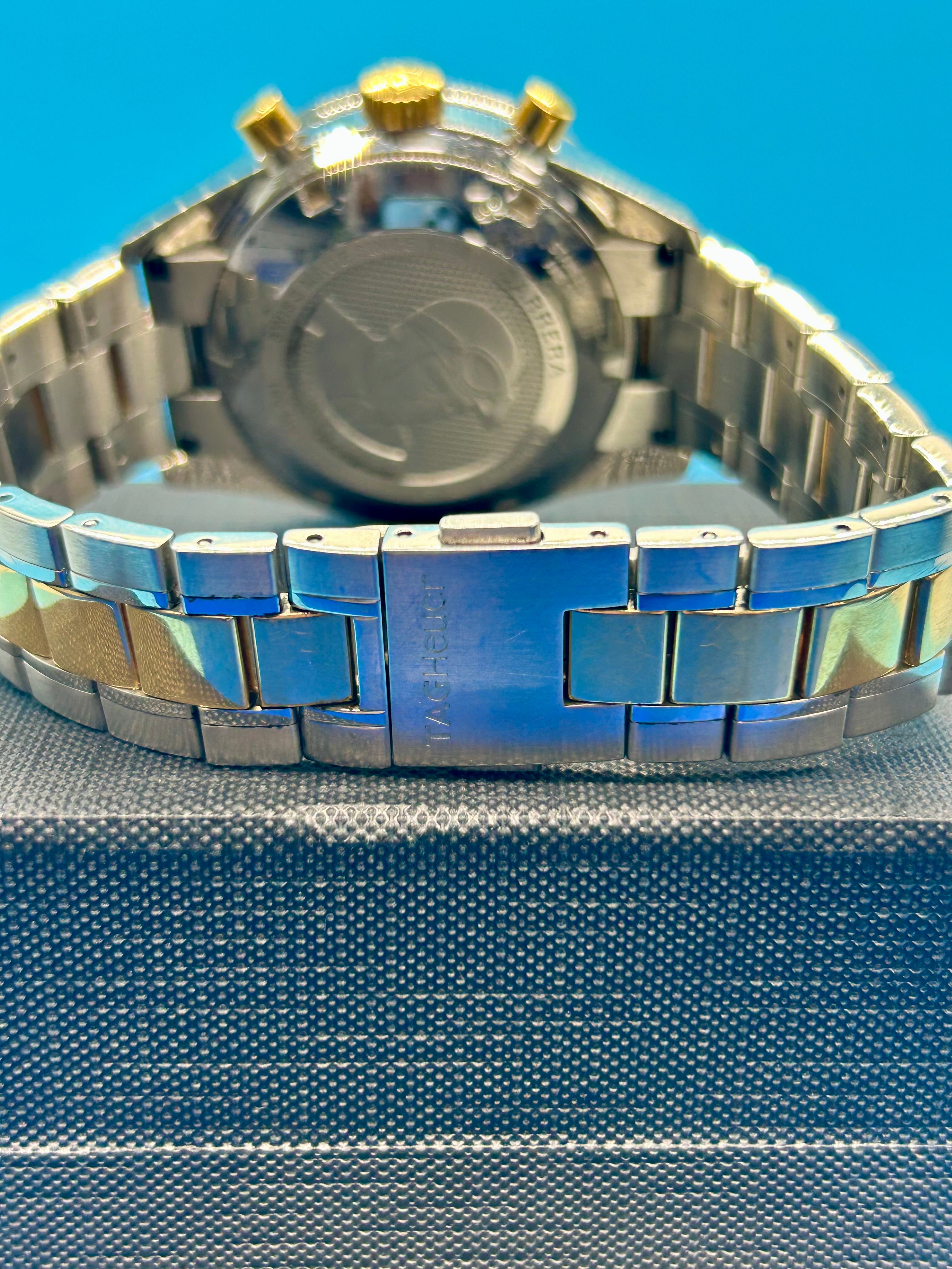 We have here up for sale a Tag Heuer Carrera Calibre 16 Chronograph Automatic Watch CV2050-3. This watch is in good condition as seen in the pictures. This watch does not come with its card, books, box or spare links. This watch is two tone with approximately a 6.5 inch bracelet. A stunning watch for any Swiss watch enthusiast or any collectors of high end watches. Here are some further details.
